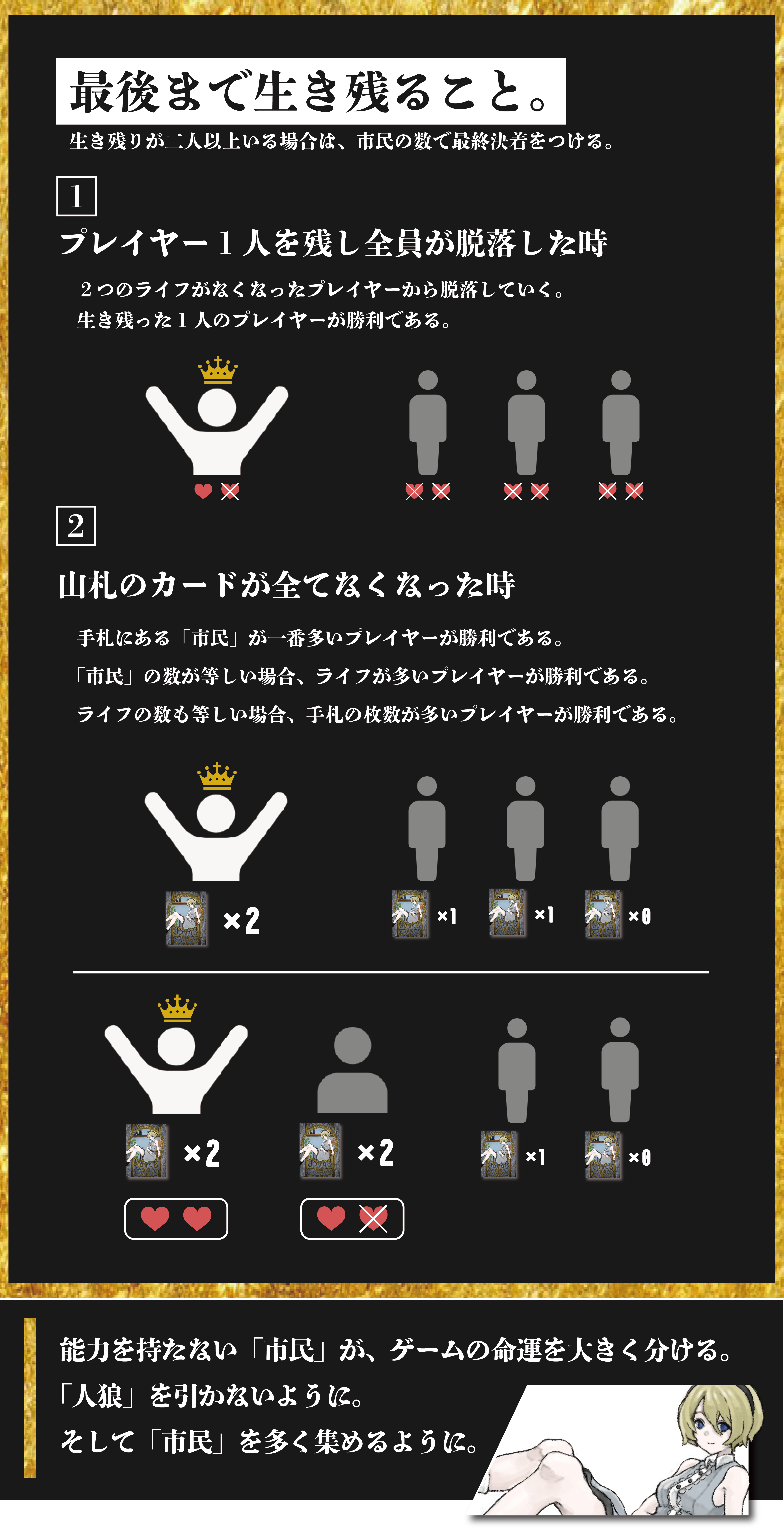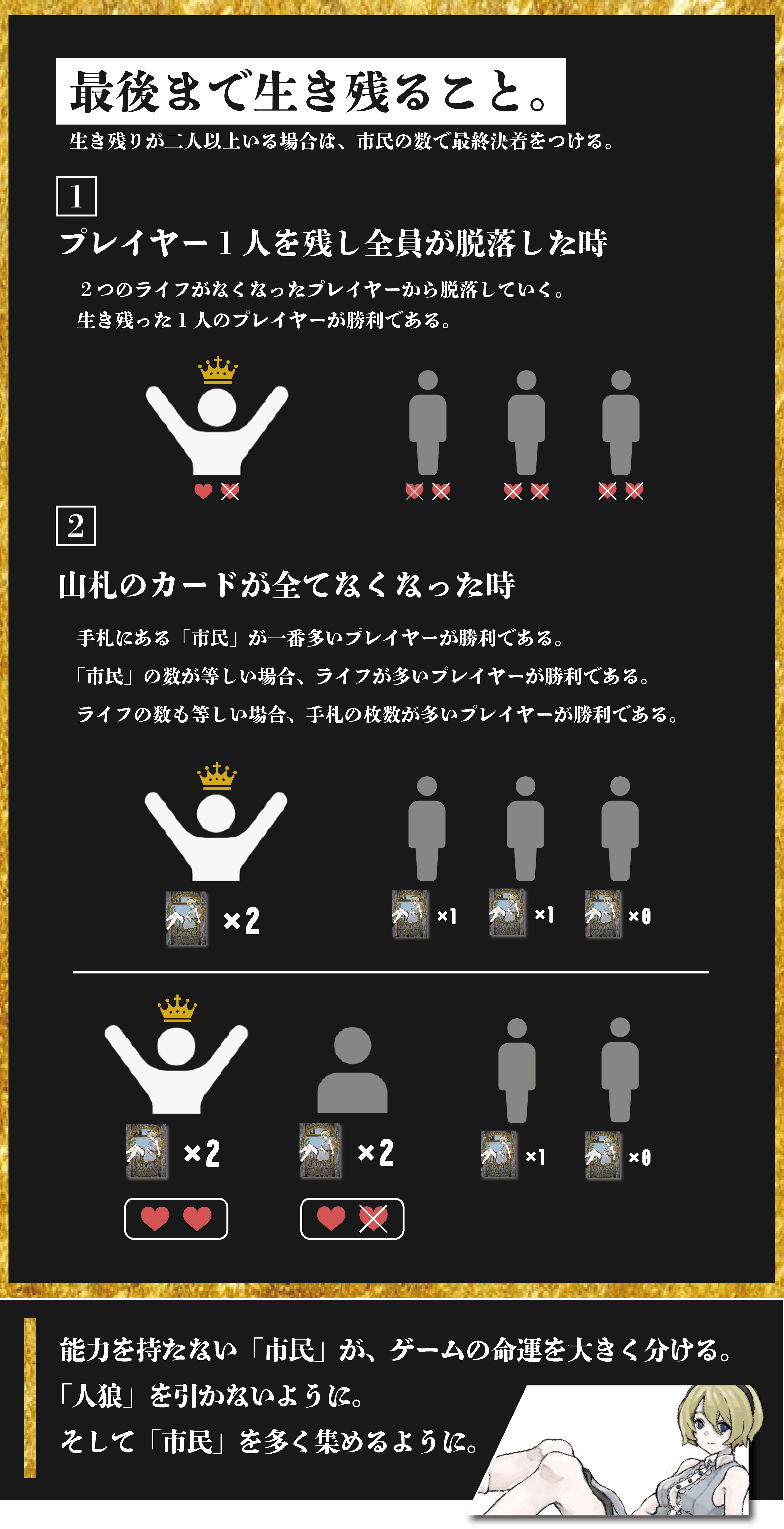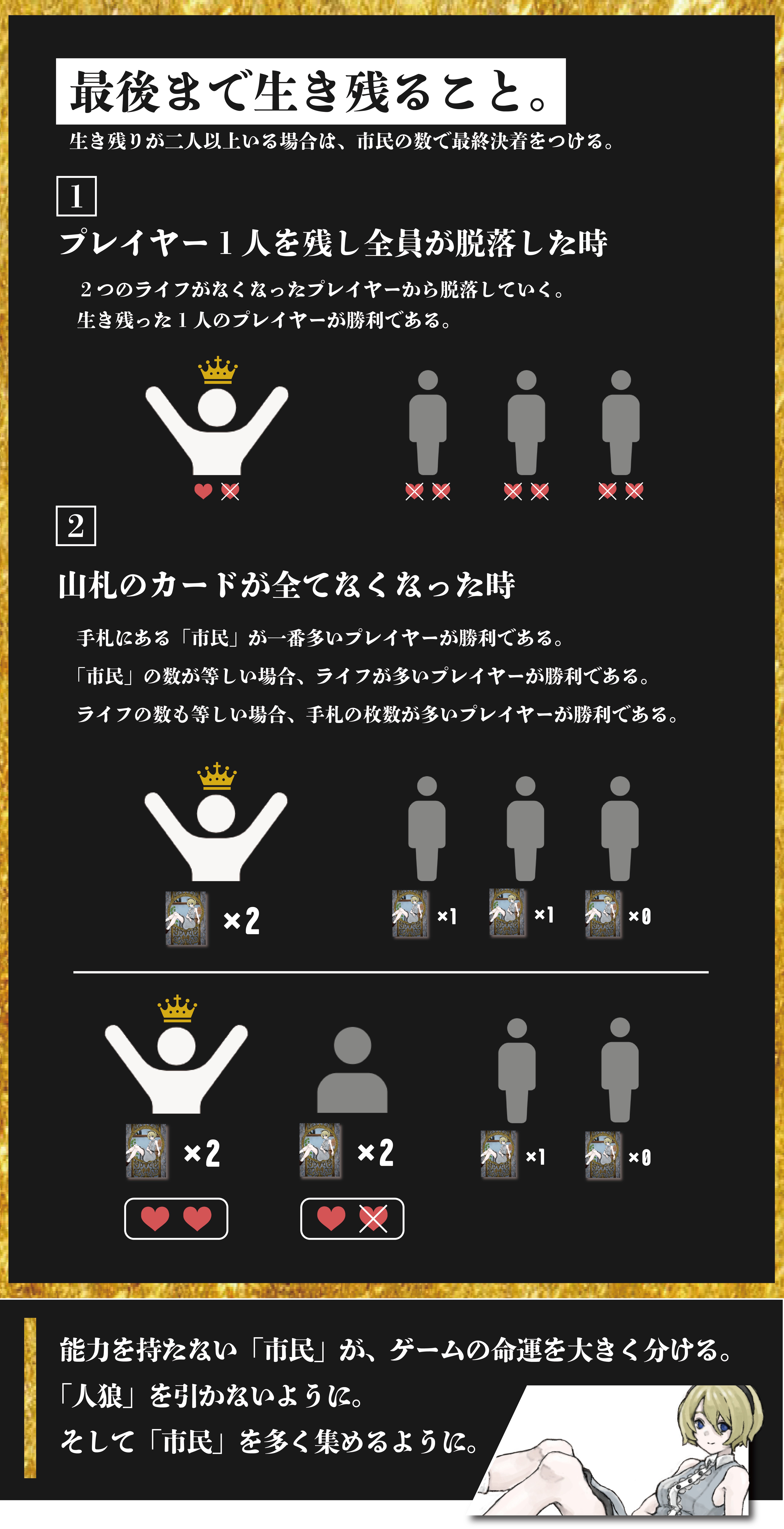 勝利条件は、最後まで生き残ること。