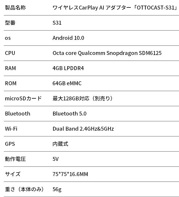「OTTOCAST-S31」はワイヤレスCarPlayとAndroid Auto機能も搭載しており、iPhone/Androidスマホ両方とも対応しています。