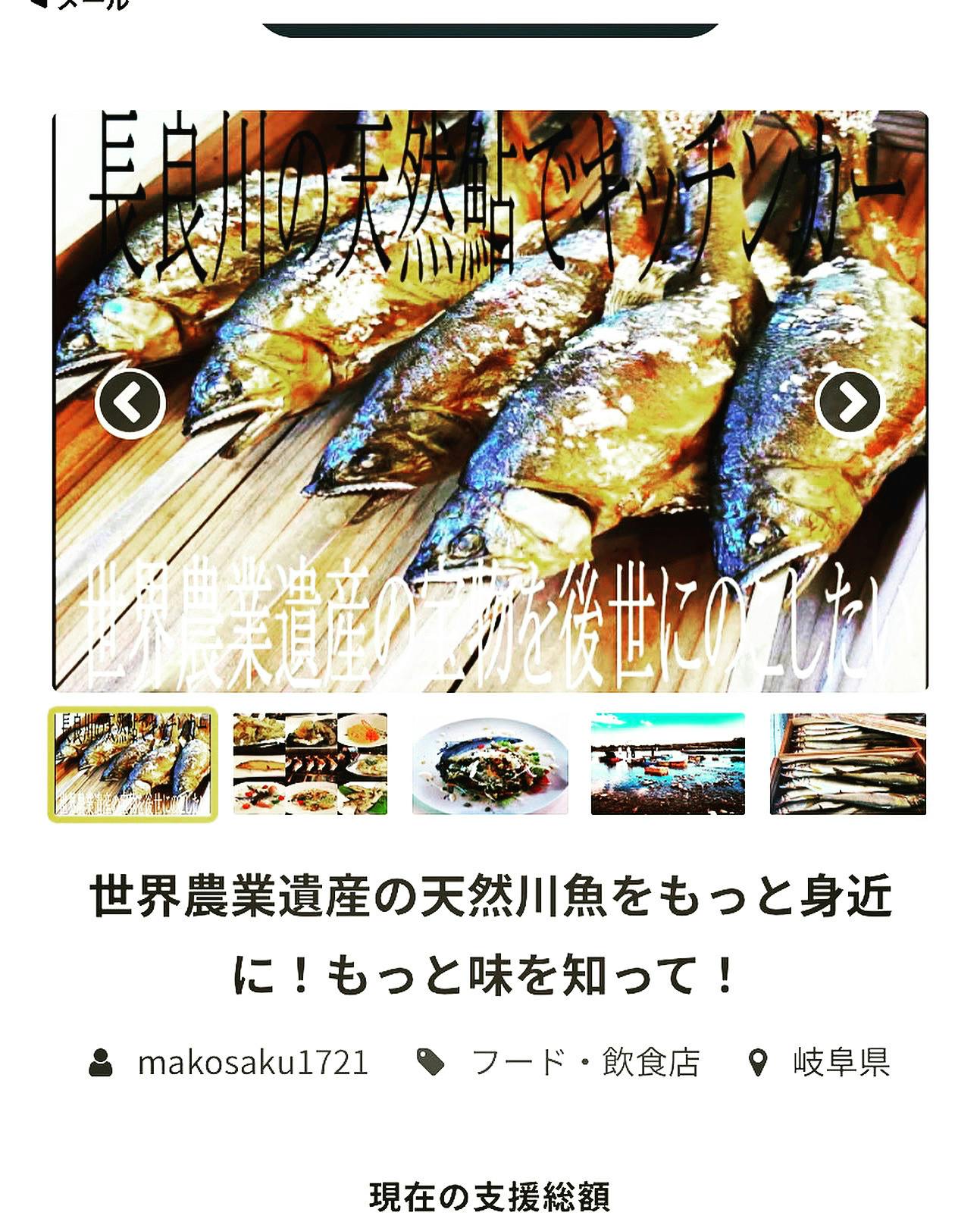 リターンの商品に関しましては岐阜県長良川の天然鮎を使って鮎本来の素晴らしい味を堪能して頂きたいと思っております。