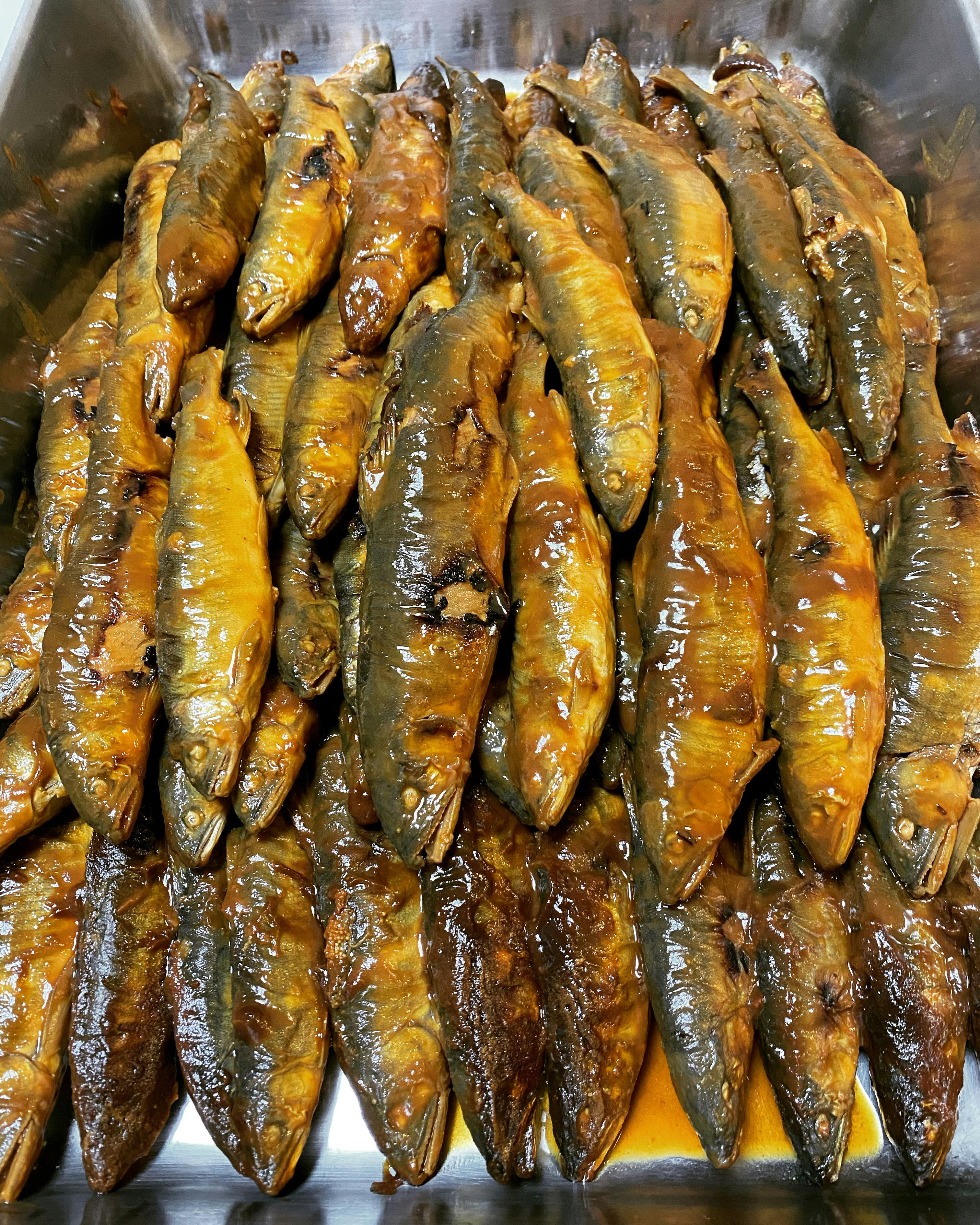 2022/10/26 18:41クラウドファンディングも残り5日間になりました。大変苦戦中です。でも前進するのみです。最後の最後まで応援宜しくお願い致します。本日は長良川天然子持ち鮎の味噌煮を完成させました。3日間煮込んで大豆と味噌で炊き上げ大変手の込んだ味噌煮になります。明日に向けて仕込み致します。宜しくお願い致します。 もっと見る
