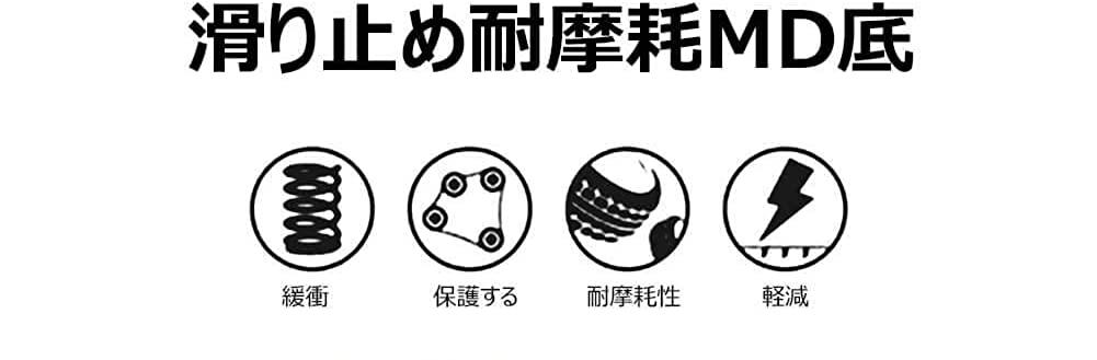 アッパーは通気性のニットを採用して、通気性も改善させるので、熱がこもるのを防ぎ、さわやかな履き心地を提供してくれます。長い時間履いても快適!