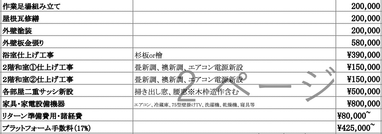 ●内装リフォームにかかった原価表(施工費、材料費、設備機器、申請費等)・・・2枚