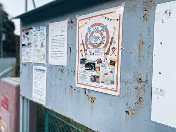 町の掲示板にオープンイベントのチラシが貼られてる!