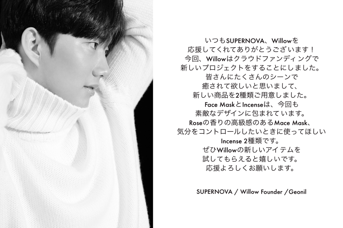 はじめまして、私たちは韓国人の男性アイドルグループ【SUPERNOVA(超新星)】のメンバーであるゴニルを中心に、チーム5名で株式会社Willowの運営をしております。