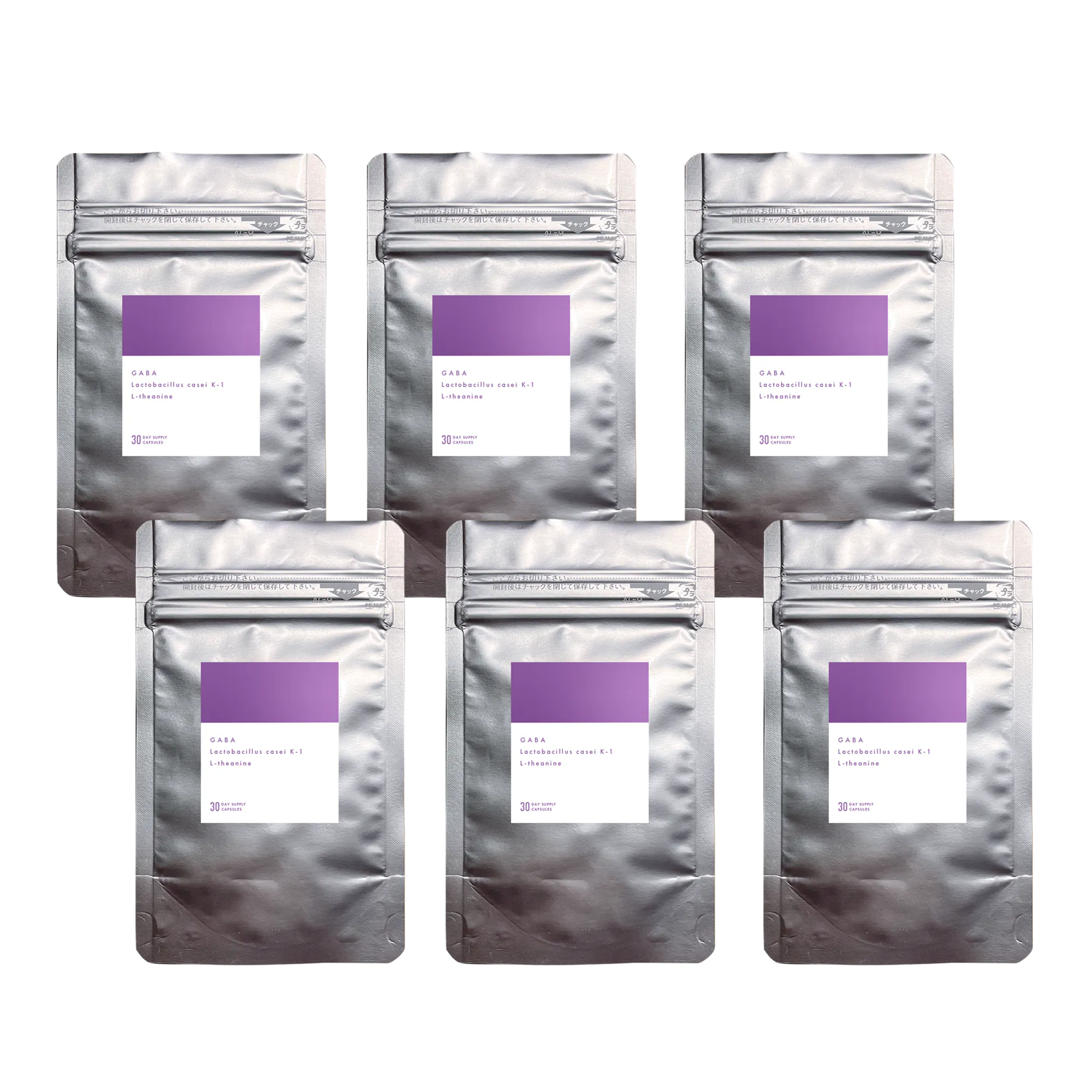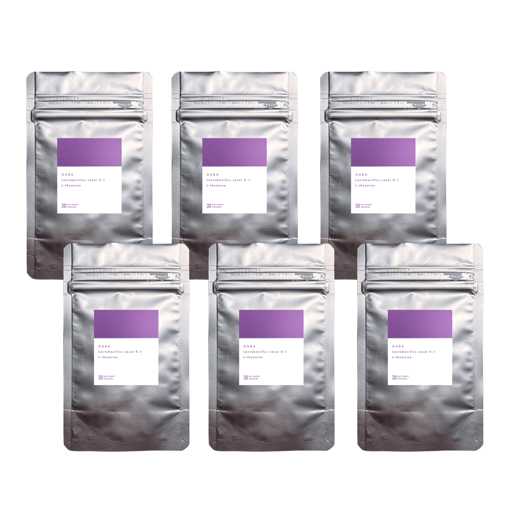 原材料名(暫定):大麦乳酸発酵液ギャバ(国内製造)、ビール酵母、還元麦芽糖水飴、乳酸菌末(殺菌)、デキストリン、ビタミンE含有植物油、パッションフラワーエキス末/セルロース、ステアリン酸カルシウム、ビタミンB₆、ビタミンB₁、ビタミンB₂、微粒酸化ケイ素、Lーテアニン、ビタミンB₁₂
