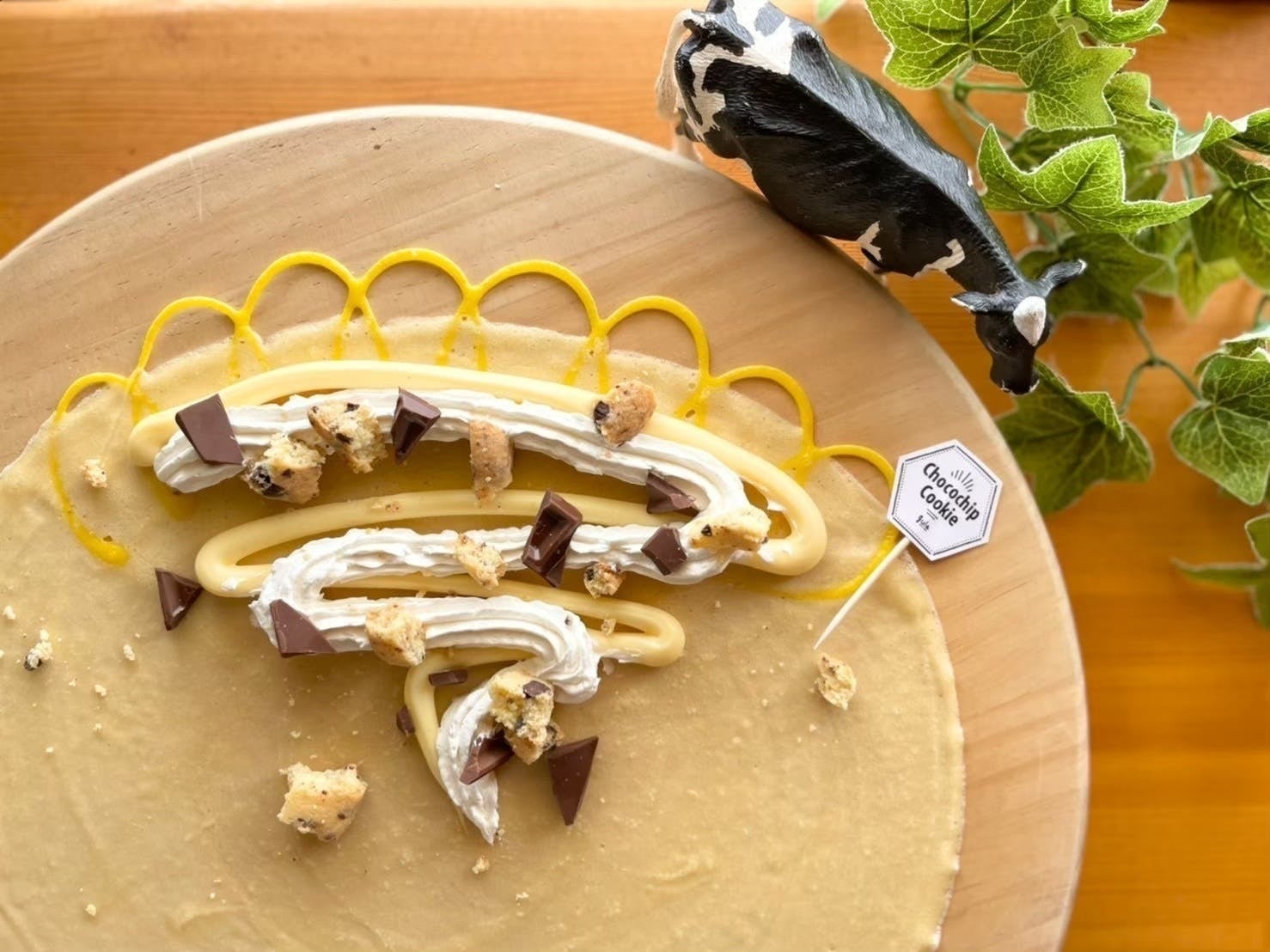 バターをたっぷり使った手作りチョコチップクッキーにホイップとカスタードのWクリームを合わせ、さらに砕いた板チョコで食感に遊びを…。アクセントに荒めの岩塩を散らし甘さの中の塩味がクセになります。