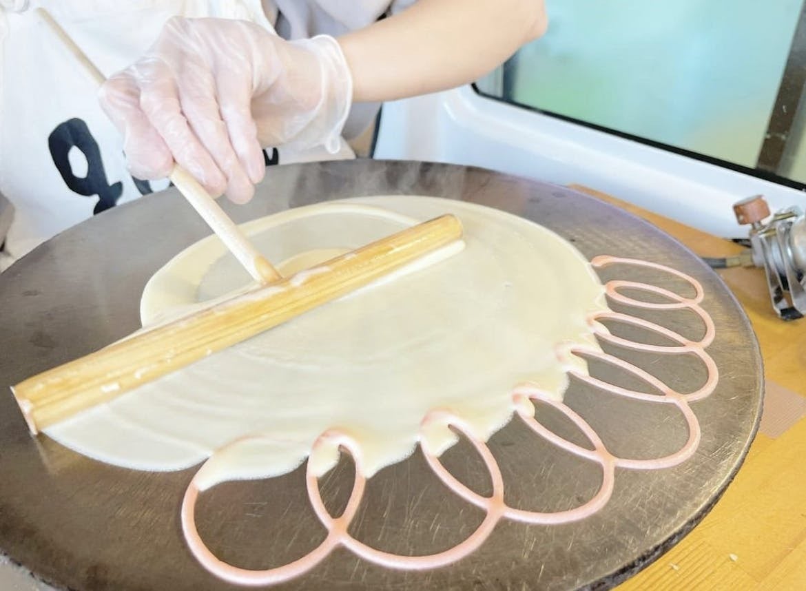 私達は2019年にお花の形をしたクレープのキッチンカーを始めました。食べる時に少しでも明るい気持ちになるように、幸せな気持ちになるように気持ちを込めてお花のクレープを焼いています。