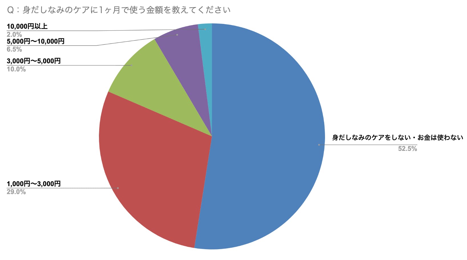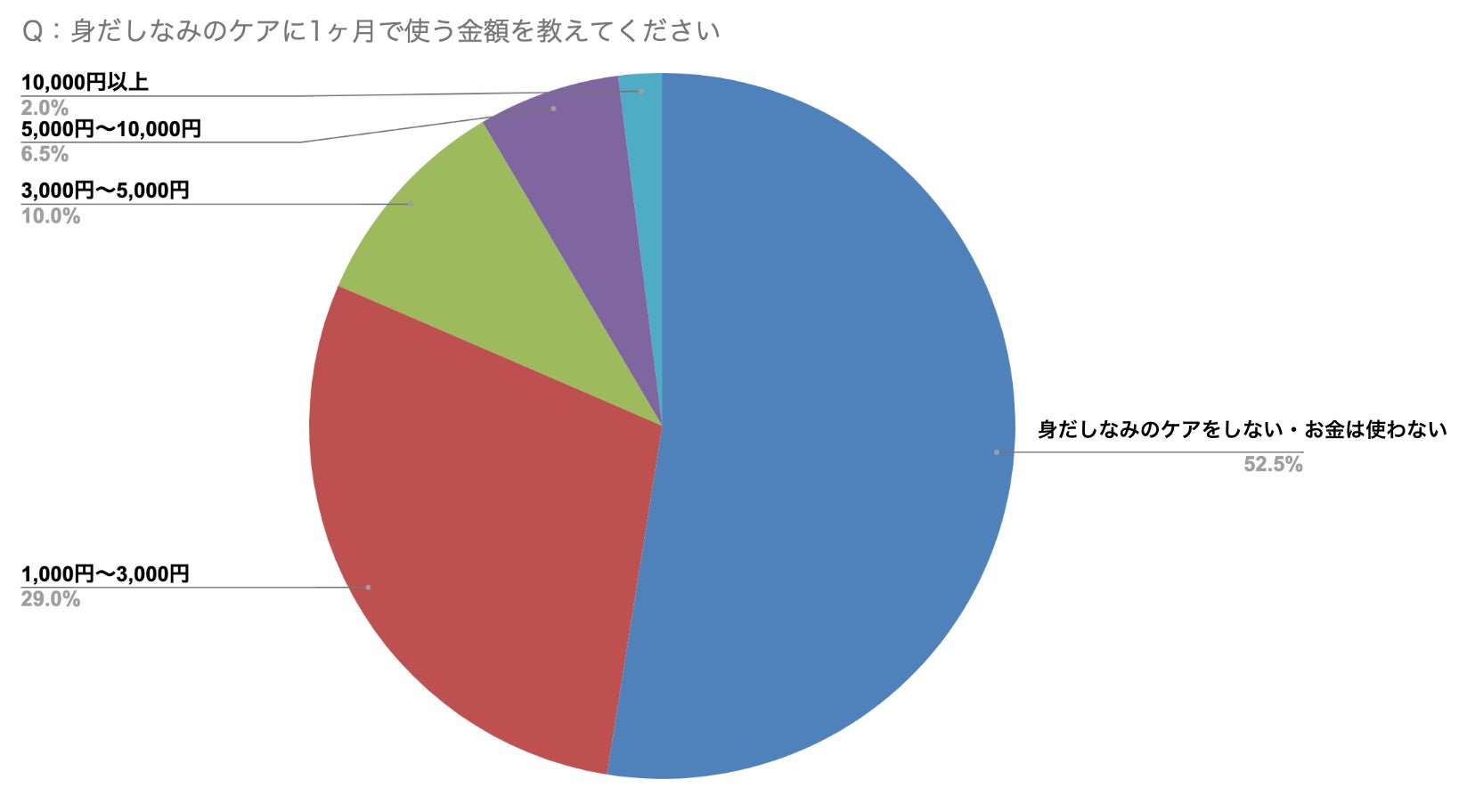 一方で、それだけ身だしなみの清潔感が重要であると言う認識が強い中で「身だしなみケアの投資状況」を男性に伺うと、約50%以上の方が『そもそも身だしなみケアをしない・お金を使わず自身で対応する』という美容業界に従事する私としてはなんともショッキングな回答結果が出てしまっているのが、現在の男性の清潔感に対するモチベーションではないのでしょうか。