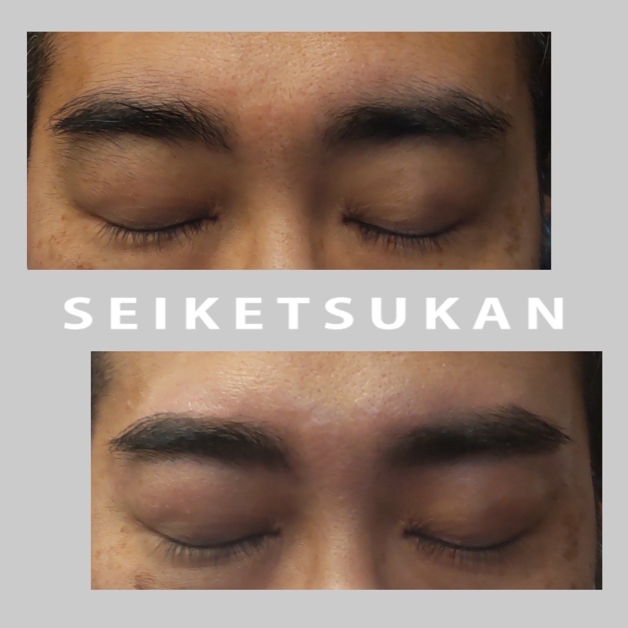 眉毛ワックス脱毛施術前(上)、施術後(下)