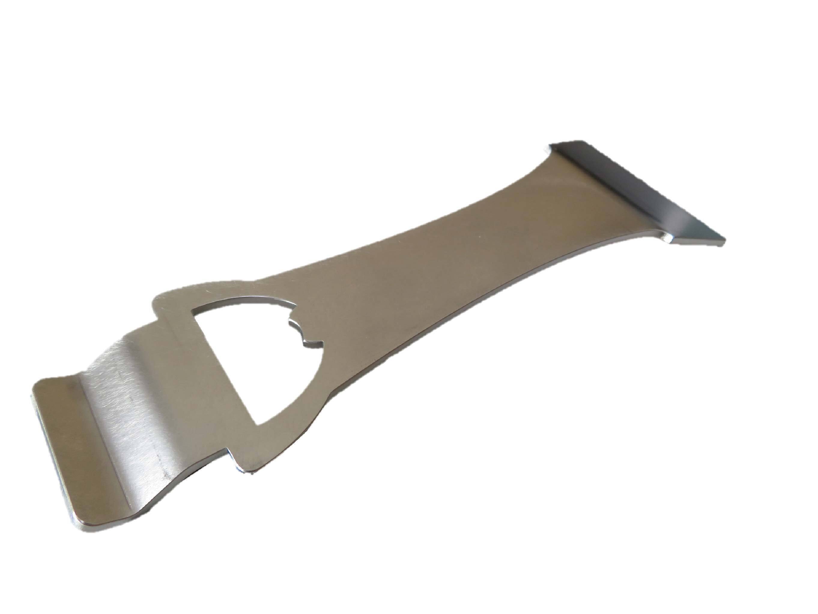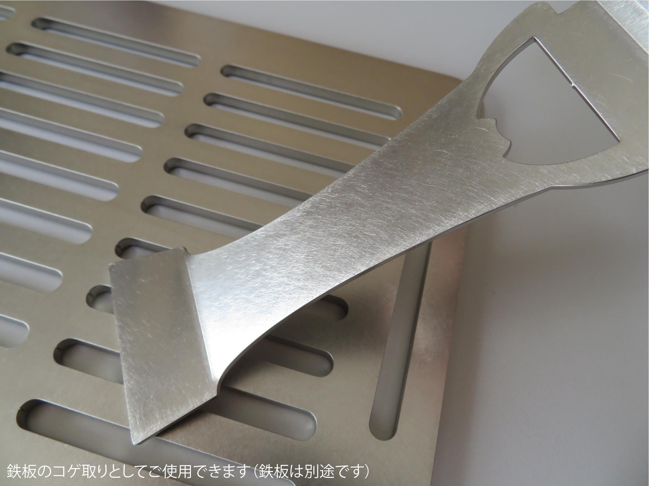 鉄板に付着した焦げを取り除く「ヘラ」と更に「栓抜き」を兼ね備える、