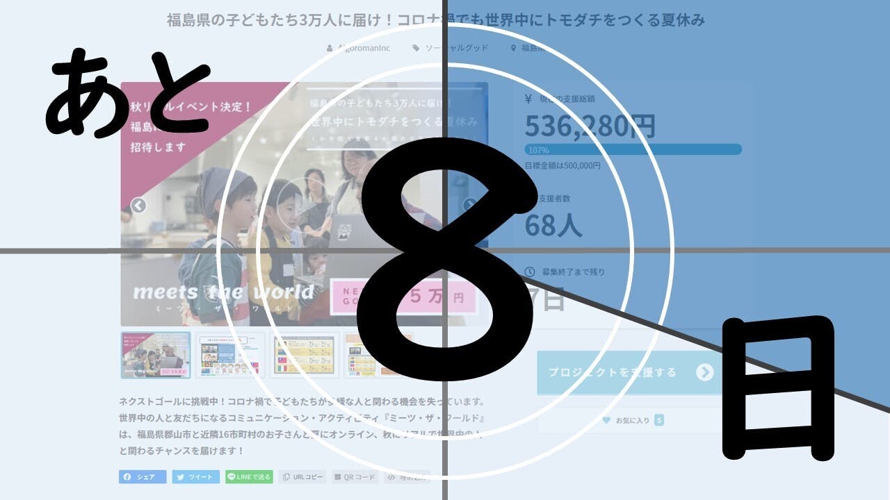 ネクストゴール<75万円>を目指しています!!募集終了まであと8日間!