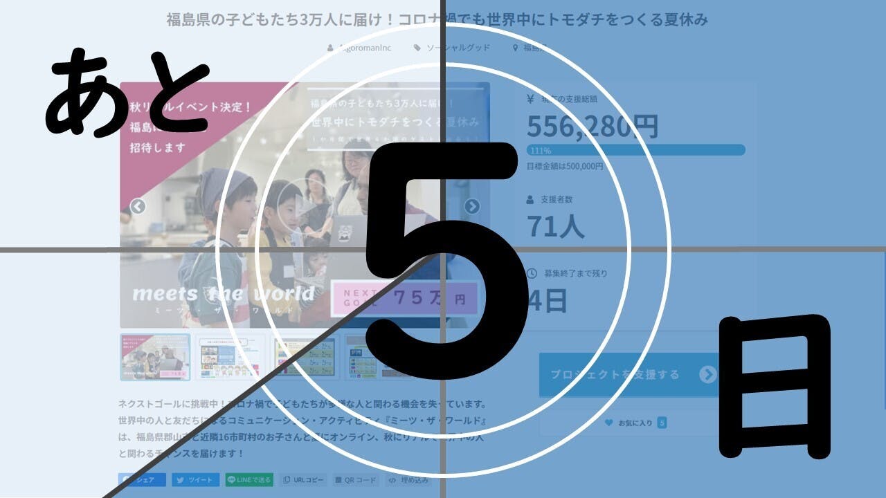 ネクストゴール<75万円>を目指しています!!募集終了まであと5日間!