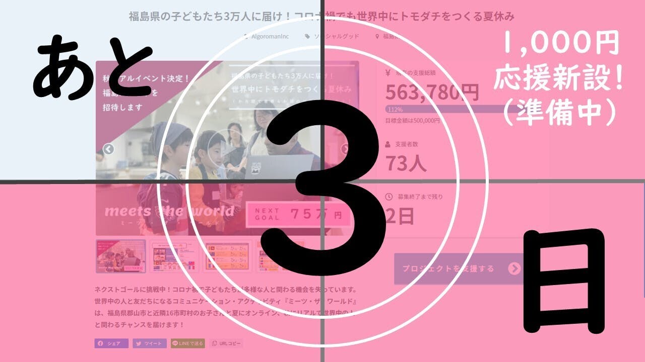 「最後のもう一押しで、子どもたちを1,000円応援!!」