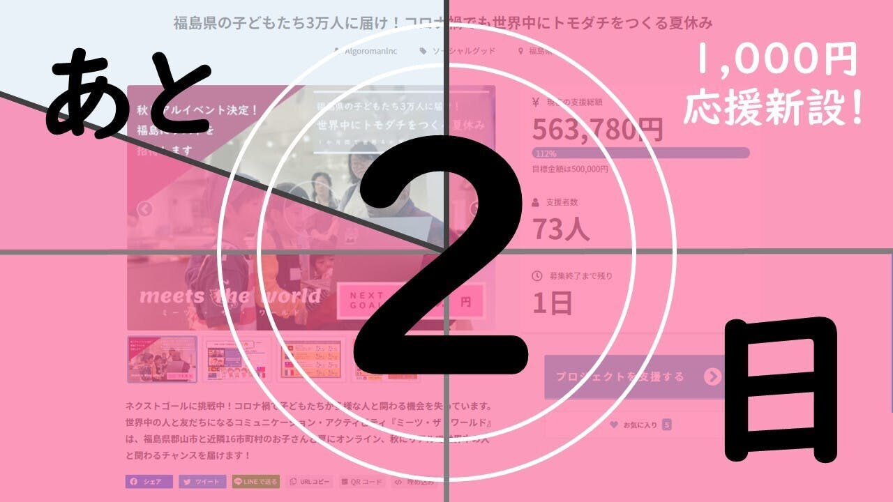 「最後のもう一押しで、子どもたちを1,000円応援!!」