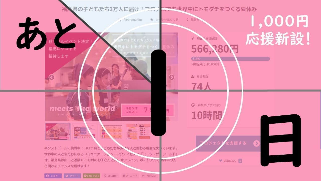 「最後のもう一押しで、子どもたちを1,000円応援!!」