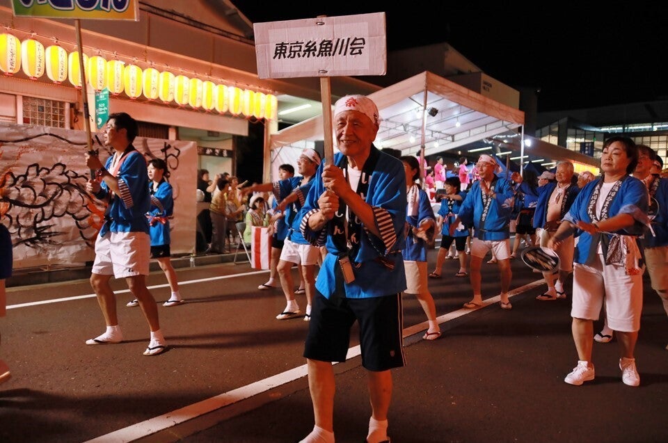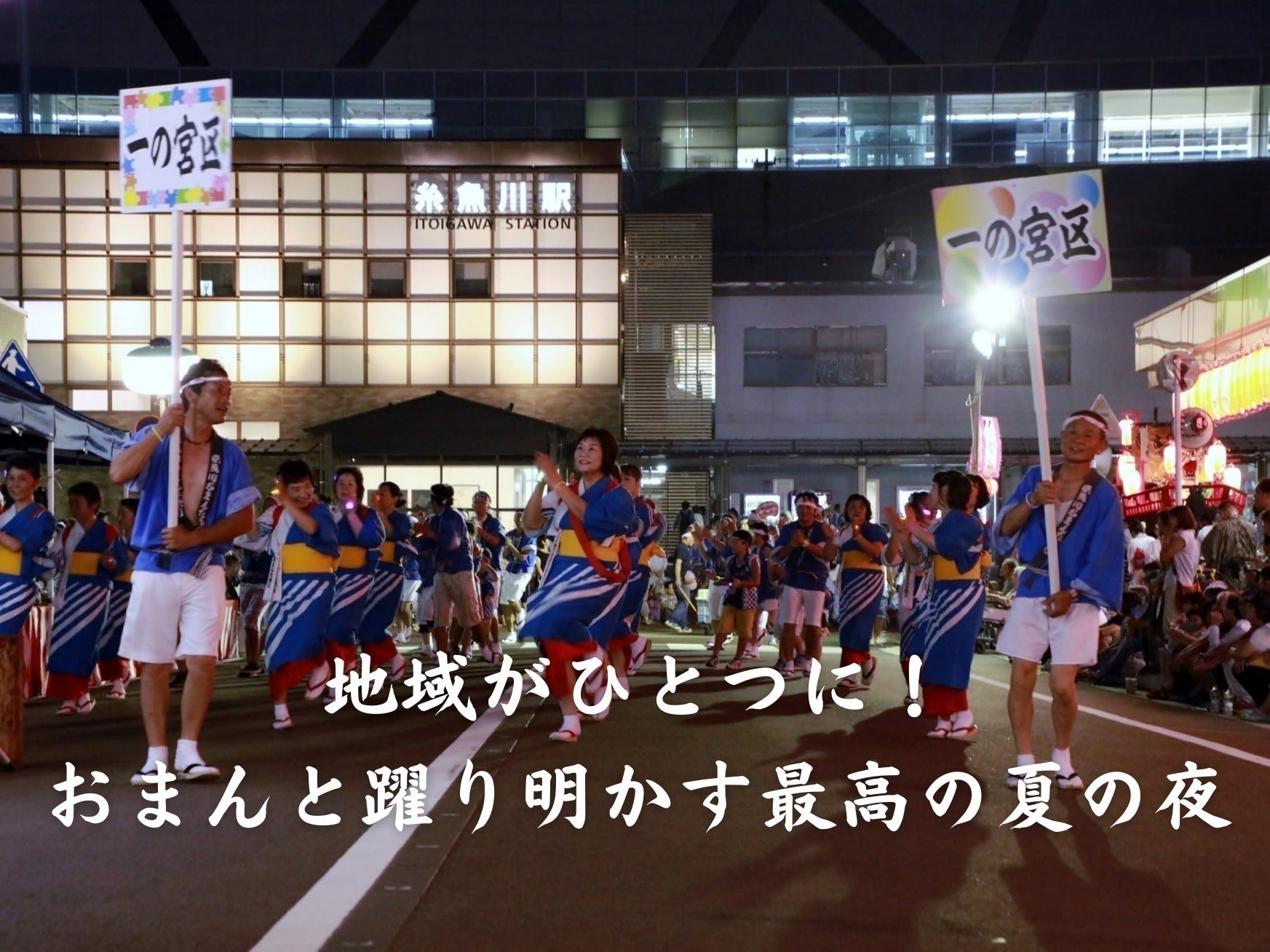 当糸魚川おまんた祭りは、新潟県の糸魚川市に夏の訪れを告げる風物詩として、毎年開催されている一大市民祭りです。『おまんた』とは糸魚川弁で『あなたたち』を意味し、おまんた(あなたたち)の誰もが主役!!大人も子供も、町のしょう(人たち)も、山のしょう(人たち)も、あねちゃもおかちゃも、あんちゃもおっちゃも、みんなみんな一緒になって『糸魚川おまんた囃子』を踊り、市民の輪・糸魚川の和を繋いで、地域間交流と地域経済活性化をはかる夏祭りです。