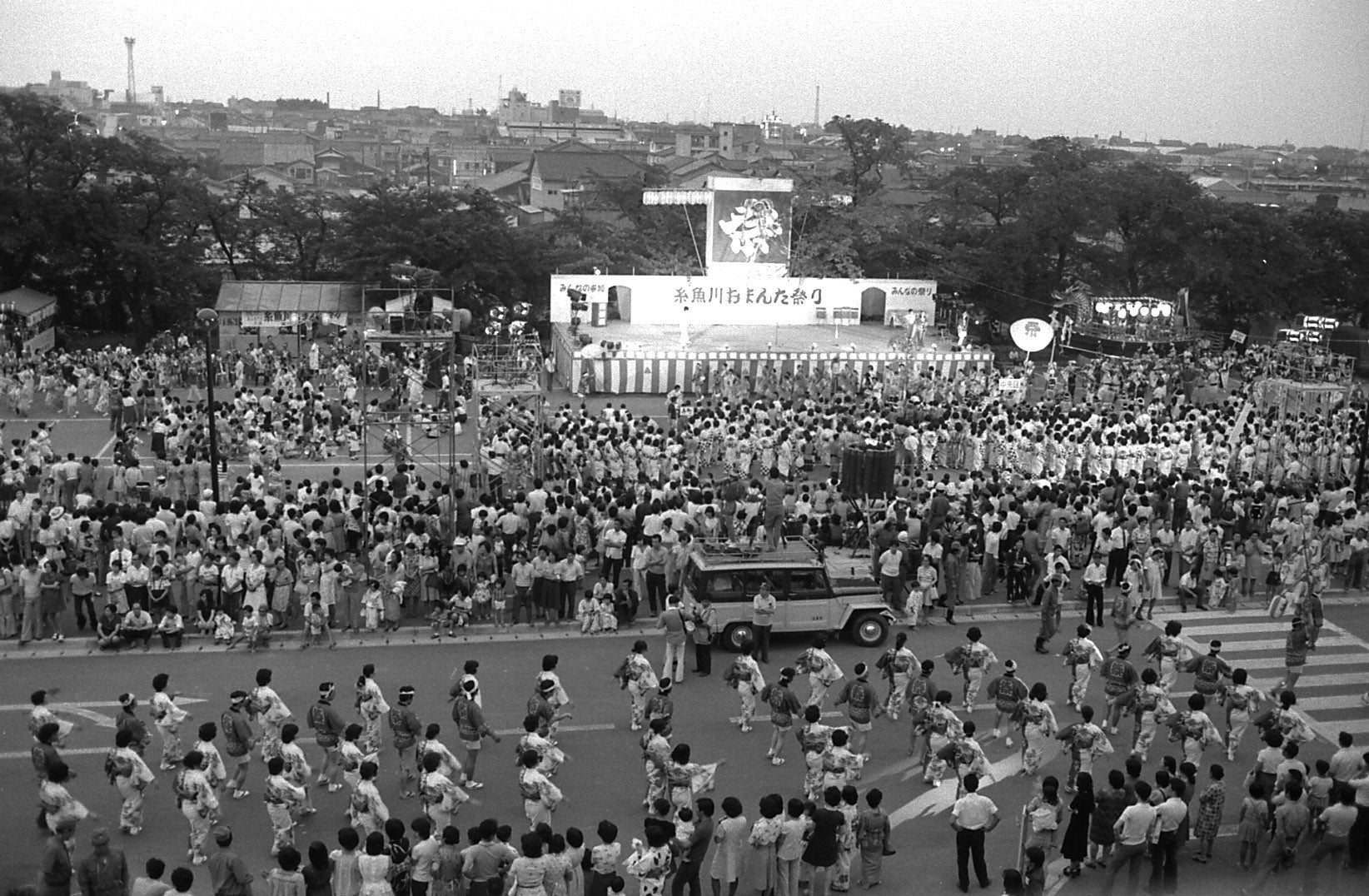 そんな閉塞した地域特性と時代のなかで、全市民が協働して一体となれる場、糸魚川市の一大市民祭りが必要だ!!との熱き想いと掛け声のもとに、当時の奴奈川青年会議所(現糸魚川青年会議所)が中心となって、市内各地区や行政・商工団体等を一体的にまとめあげ組織した糸魚川おまんた祭り実行委員会が発足しました。そして様々な紆余曲折を繰り返しながらも、昭和50年(1975年)7月19日(土)・20日(日)に記念すべき第1回糸魚川おまんた祭りが盛大に実現開催されています。以後、当実行委員会が中心となって堅い結束と絆の下に糸魚川夏の風物詩として、そして、地域間交流・世代間交流の象徴として毎年おまんた祭りは継続開催されています。