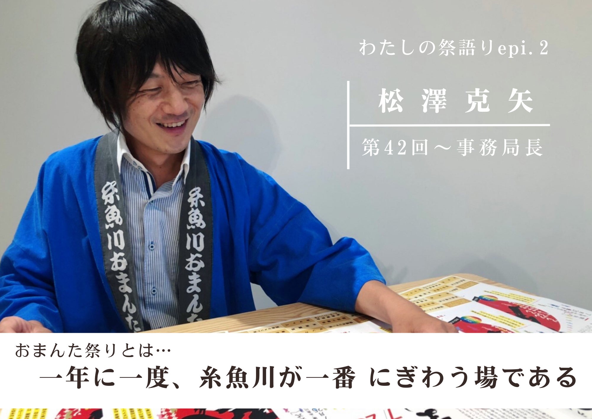 新潟県の最西端に位置する糸魚川市の夏の風物詩「糸魚川おまんた祭り」に関心を寄せて頂きありがとうございます。人口減少、高齢化など決して糸魚川市だけでの悩みではない「課題」と共に走り続けた数年間。参加人数の確保や、心から関わりを持とうとしてくれるスタッフも年々減ってきております。それでも自分自身が幼いころに見た景色、感じた懐かしさが忘れられず夏になるとお祭りに関わる仕事をしています。