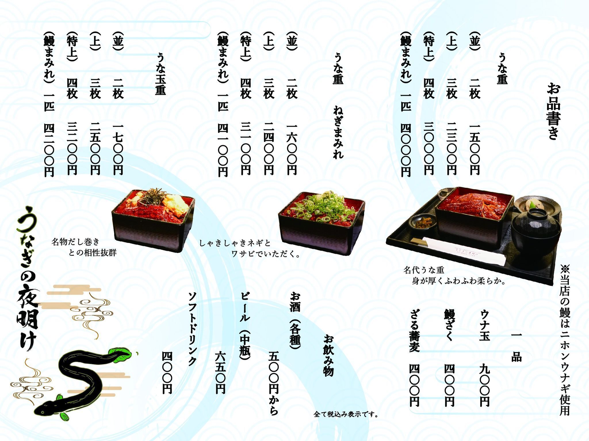 うなぎが高騰して、うな重(並)が4000~5000円が当たり前の世の中、「うなぎの夜明け」は気合と根性でおいしさはもちろん、安さとボリュームで挑戦し続けます!