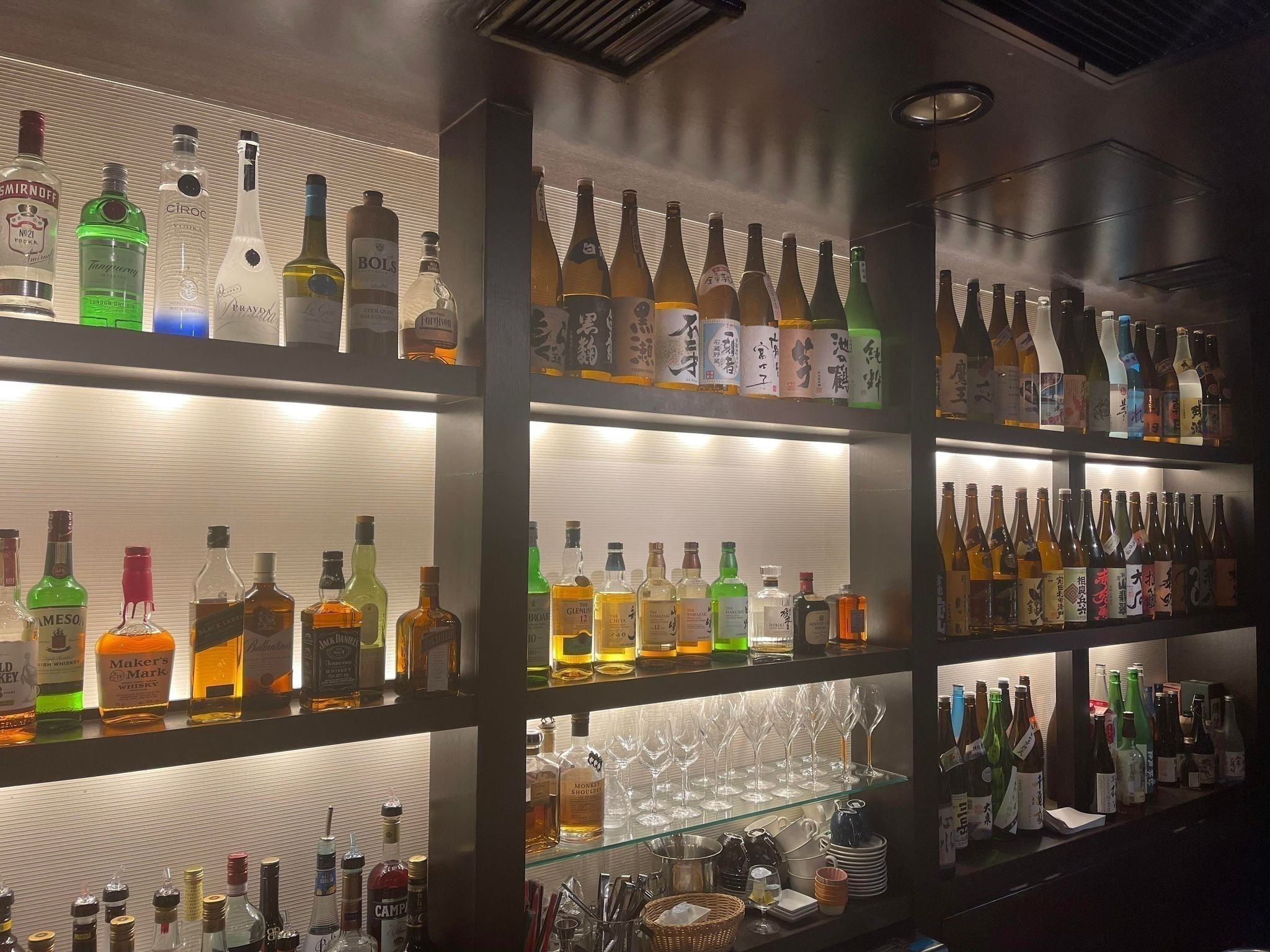 「うなぎの夜明け」では本格的BARカウンターがあり、アルコールを各種揃えています。