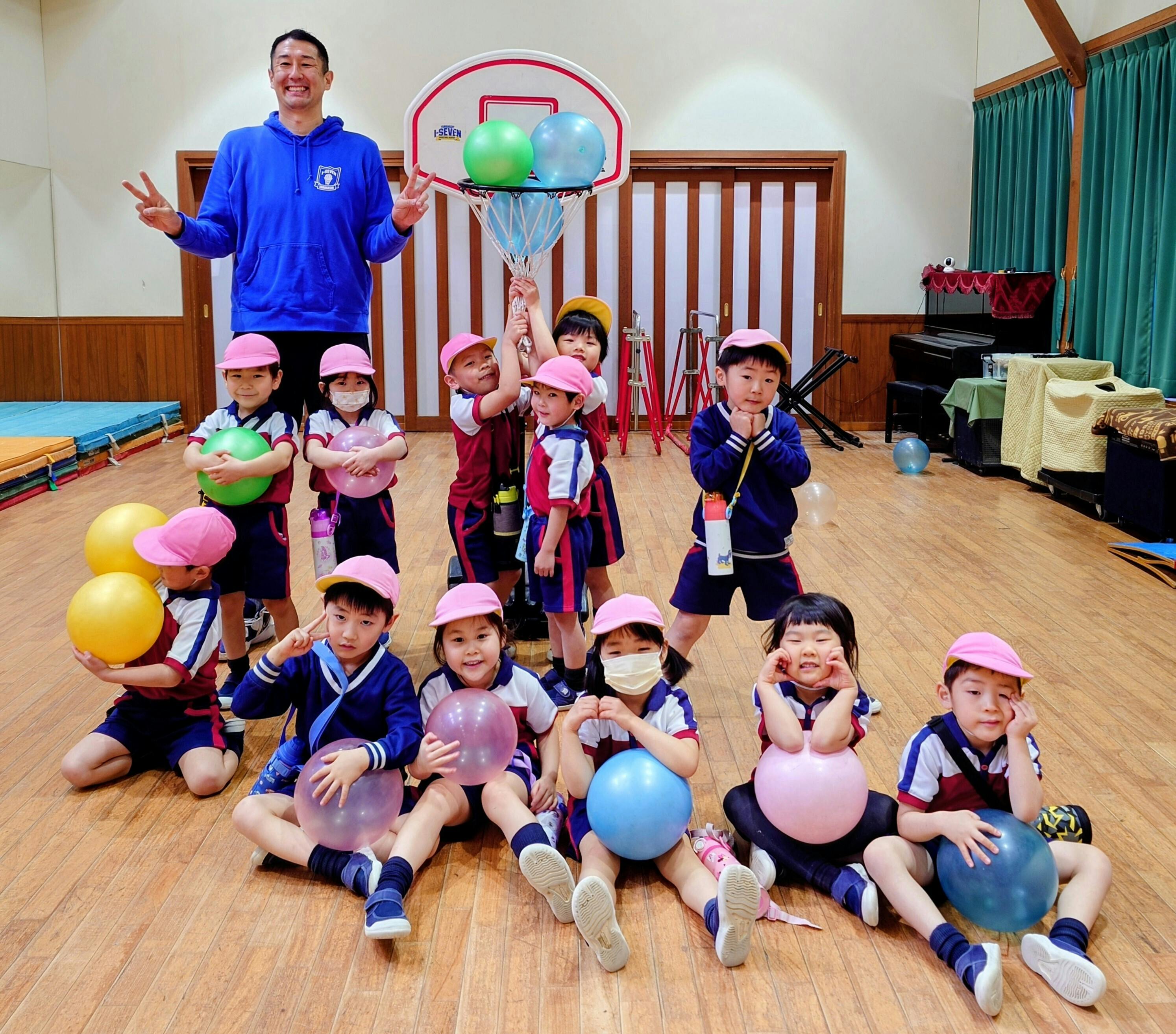 園長先生の熱い想いのおかげで、2〜3歳の未満児クラスと年中さん、総勢48名の子どもたちとバスケで遊び尽くしました!