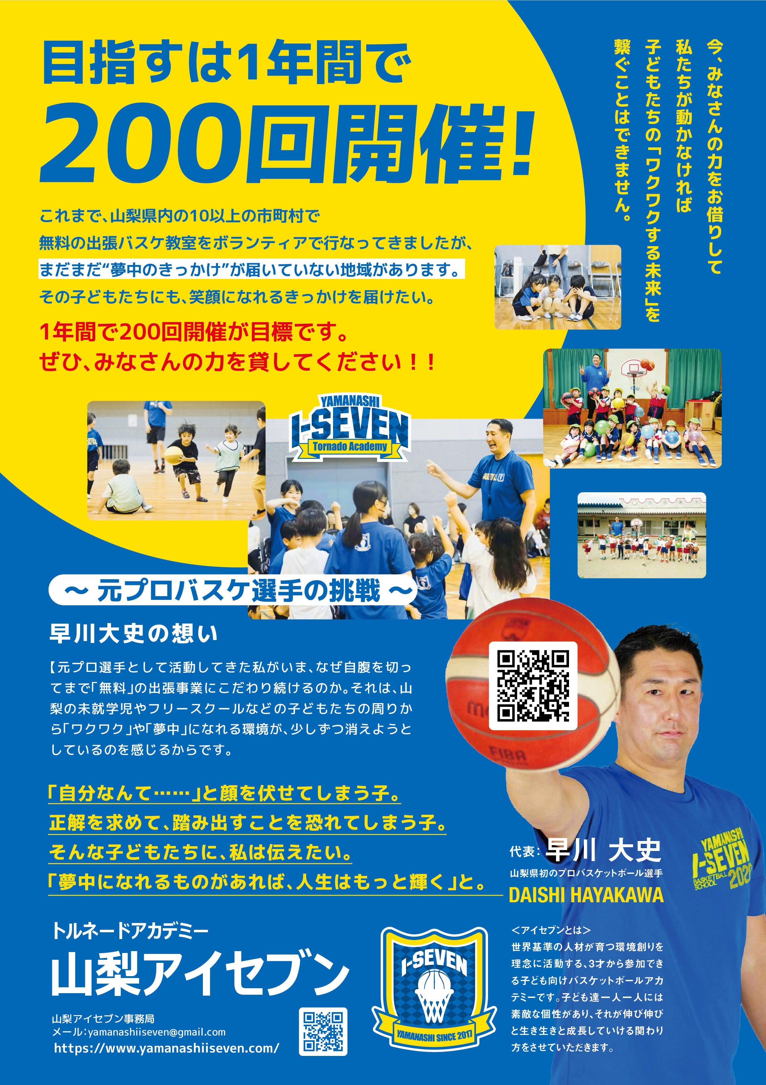『2023年から3年間で、山梨県内12市町村、63施設、400回開催、6,000名以上の子どもたちが参加してくれたアイセブンキャンバス(保育園・幼稚園・こども園・フリースクール等出張バスケットボール事業)』