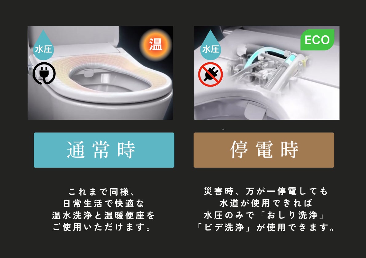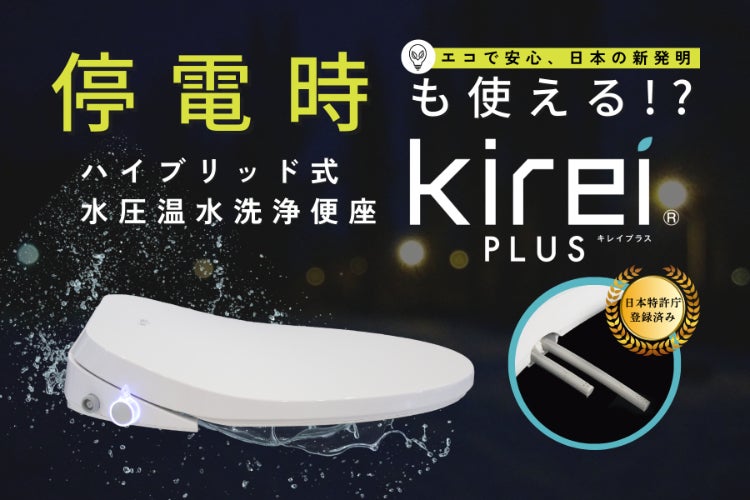 日本の新発明!日常も停電時も使えるハイブリッド式水圧温水洗浄便座『Kirei PLUS』