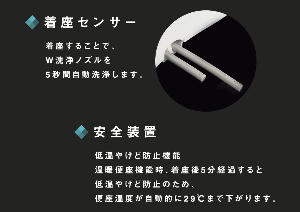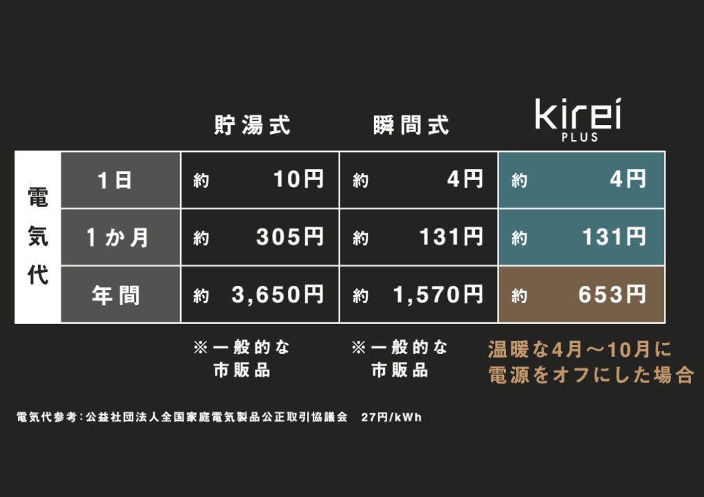 意外と盲点だった洗浄便座の電気代。水圧で洗浄機能を使える『Kirei PLUS』ならではの機能です。