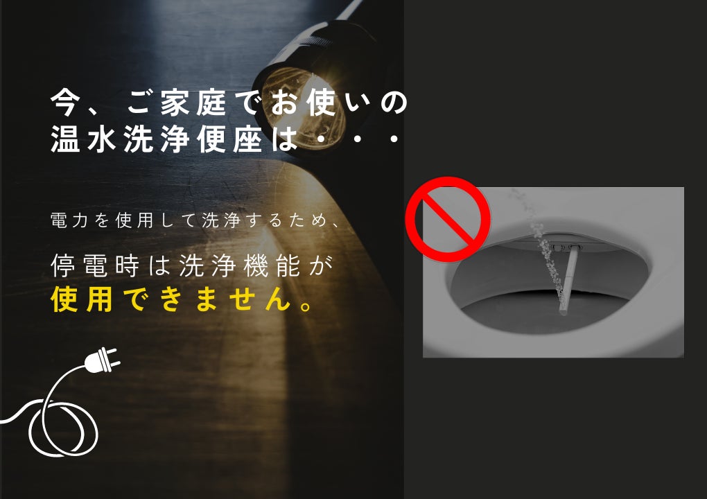 従来までの温水洗浄便座は電力でモーターを動かし水を噴出するため、停電時は洗浄機能が使用できませんでした。