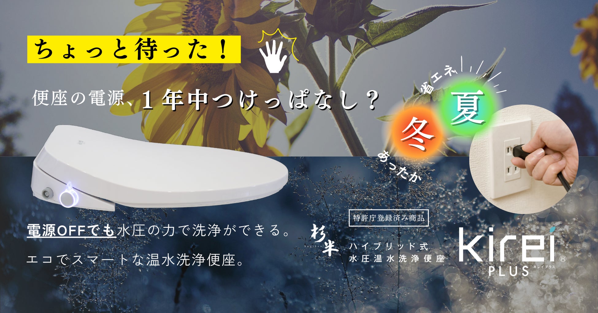 「災害対策」も「環境対策」も必須な、これからの日本の新常識としてハイブリット式水圧温水洗浄便座『Kirei PLUS』という新製品はいかがでしょうか?