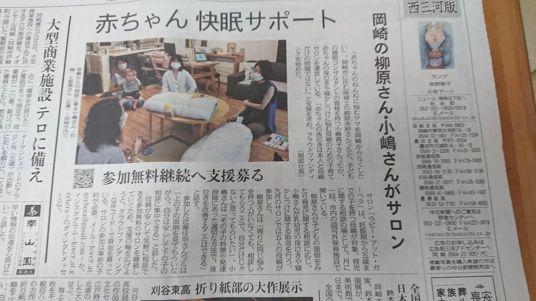 当プロジェクトが、本日付けの中日新聞に掲載されましたー!!