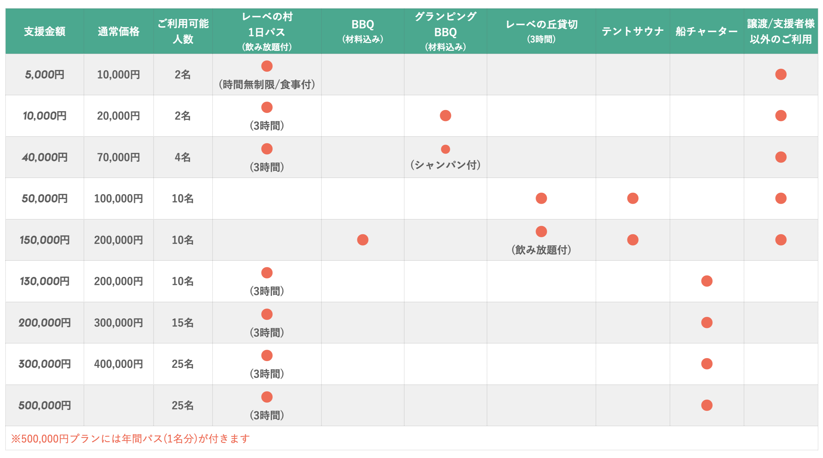 ご支援いただいた皆様には、通常価格よりもかなりお得にレーベや宮古島をお楽しみいただけるリターンをご用意しています!