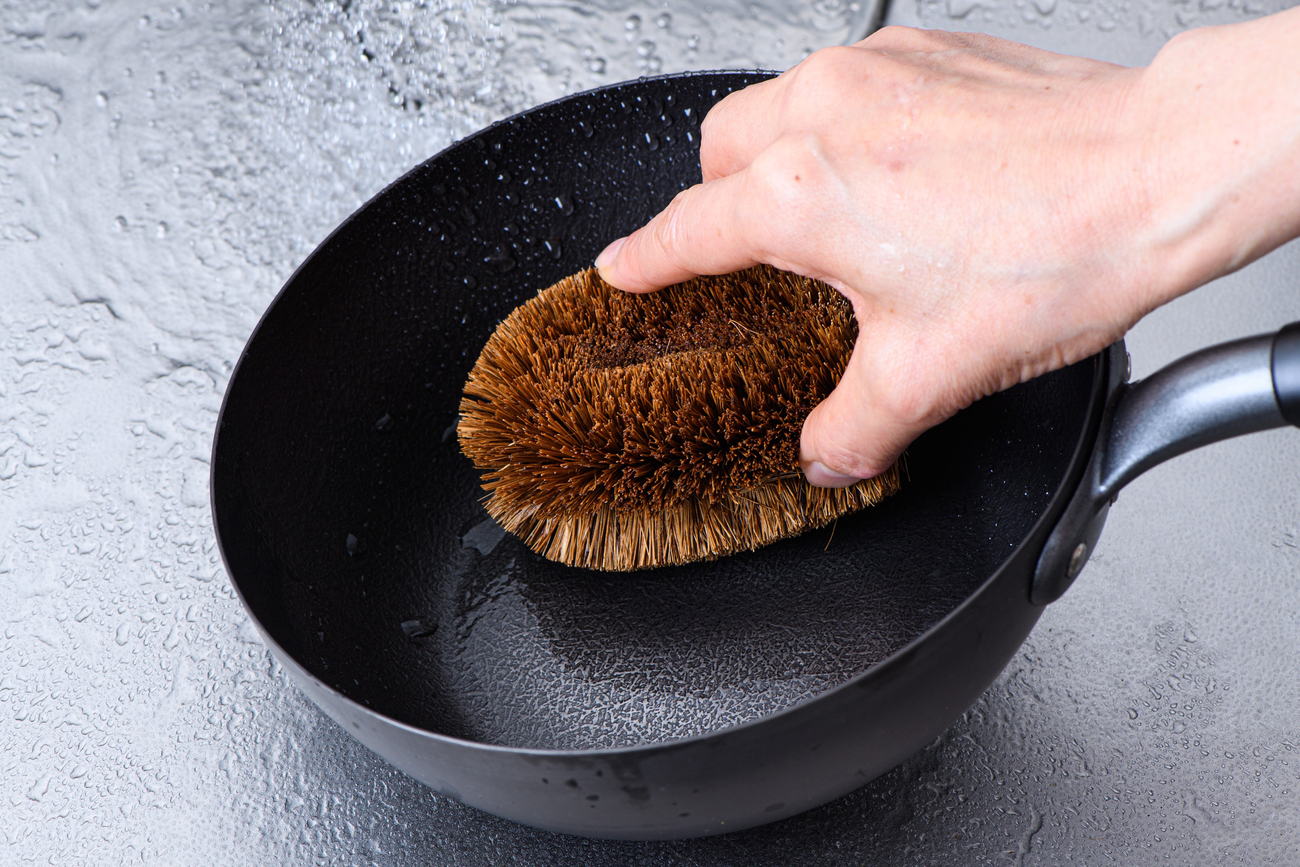 普段のお手入れは洗剤は不要です、お湯だけで洗います。たわしでゴシゴシするのは気持ちいいですよ。洗剤で洗うと、油汚れと一緒に「調理面に馴染んだ油膜」を洗い流してしまいます。上手に育てるコツは、調理前に「油返し」を行う事。使いながら育てる楽しさがONE'S PAN蒸炒鍋にはあります。
