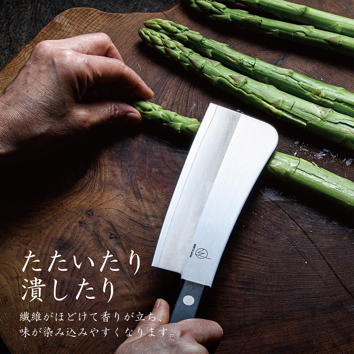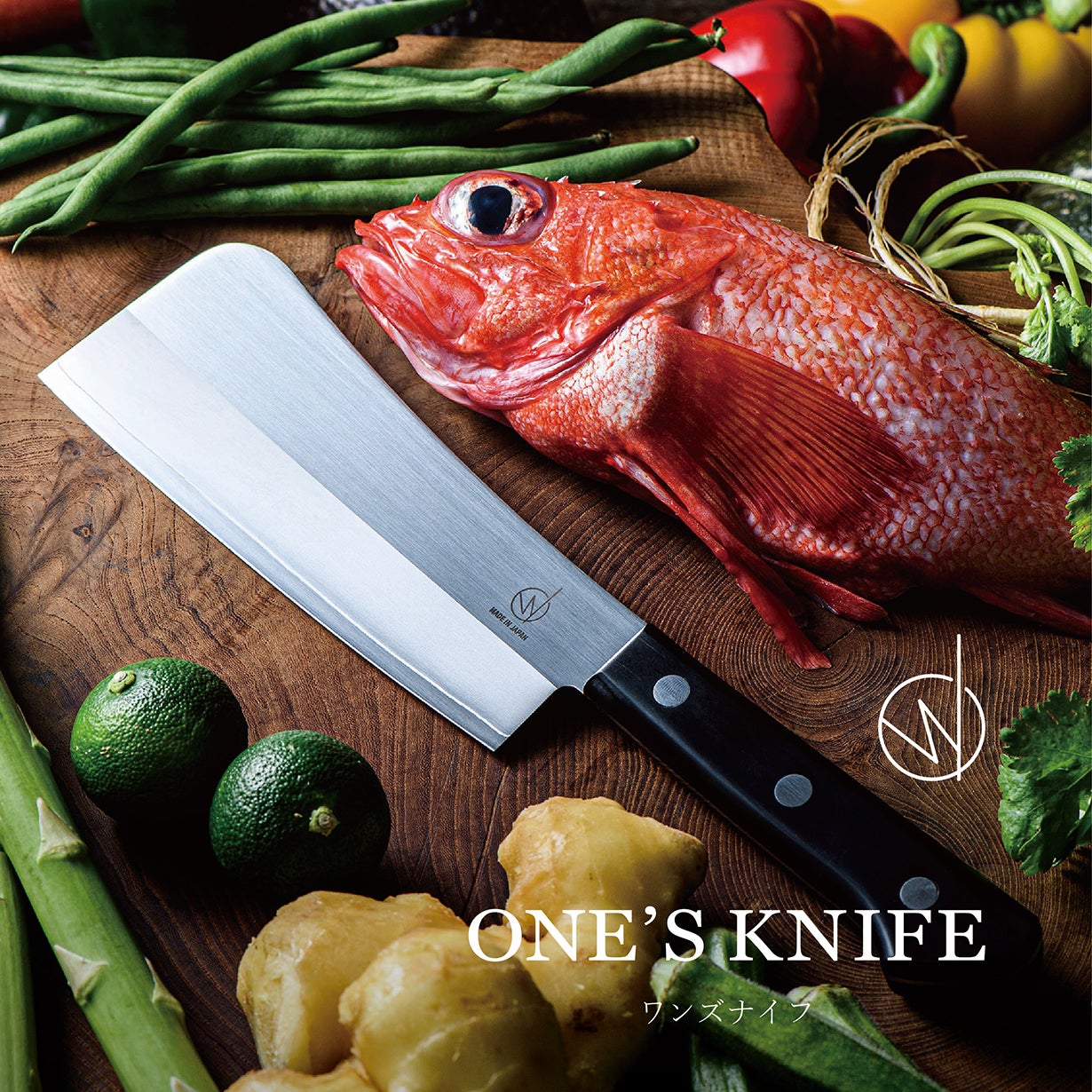 野菜は勿論、肉や魚もスパッと大胆に切れる上、「たたく」「潰す」などもこなせるONE'S KNIFE(ワンズナイフ)。中華包丁に興味はあるけど、サイズ感や重量、使い勝手がイメージできず、お悩みの方に是非お薦めの包丁です。