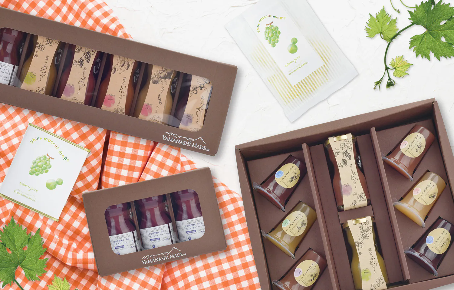 この、食べるジュースを作っているのが私たち山梨Made です。山梨Madeでは、食べるジュースの製造と、その食べるジュースから作った果物そのままゼリーやドロップ、玉ようかんなどの食べるジュースシリーズを販売しています。