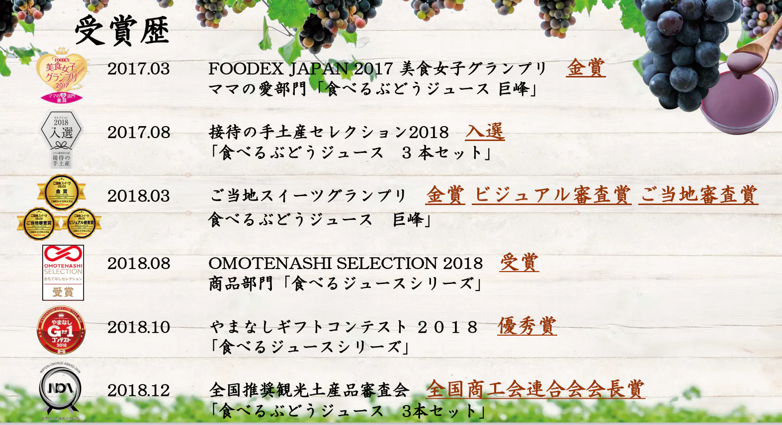 こちらが受賞歴一覧です。