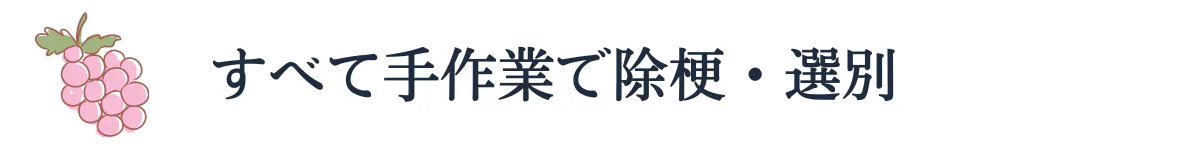 ぶどうを房からとるのも、実を選別するのもすべて手作業です。いちごは摘み取りから自社で行っています。少しでも傷などがあれば除外し品質を保っています。