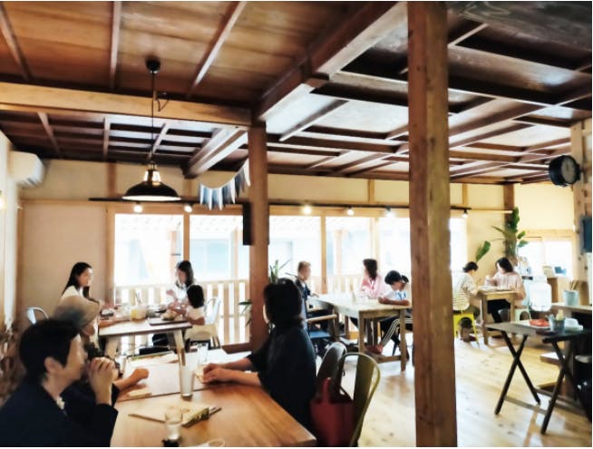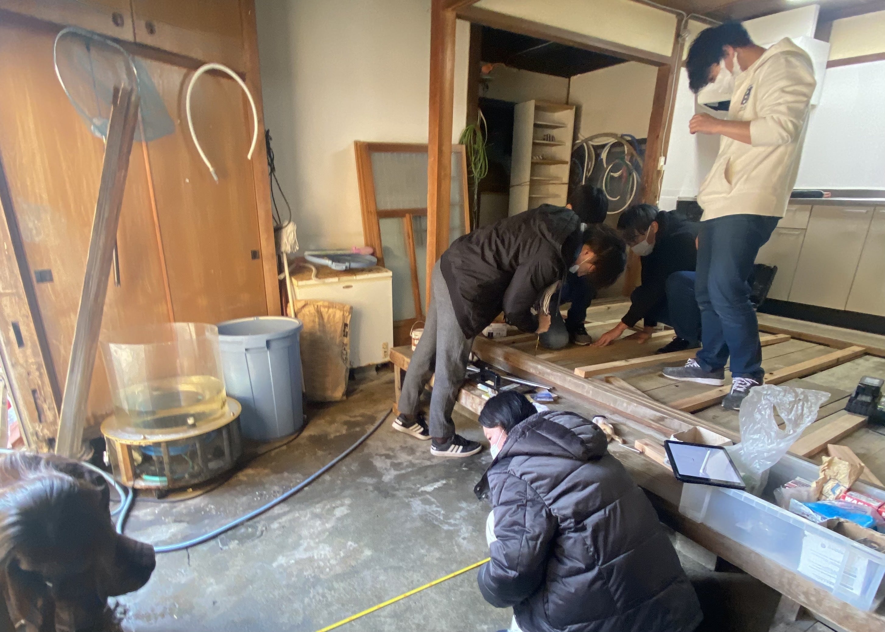 古民家の改修を行いました。一から学生の力で設計し、地元の方の協力を得ながら施工を行いました。2018年11月に無事に完成し、飲食店「Whirlpool」として再生させることができました。以後,おしゃれでおいしいカフェとして地元の人のみならず観光客の方にも人気です。