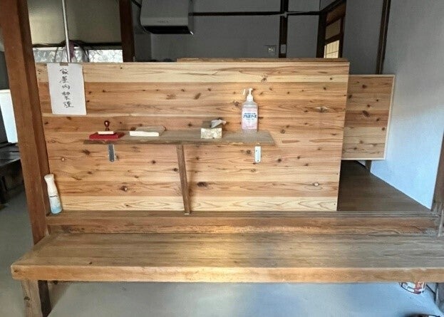 漁業町である福良の特徴を活かした、ふぐ焼きの「ふくちゃん焼き」の販売を提案し、木の温もりが感じられるカウンターを制作しました。