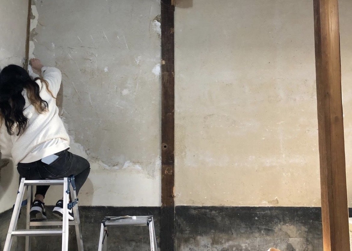 また、1階テイクアウトスペースのクロスのはりかえや壁の補修作業もしました!