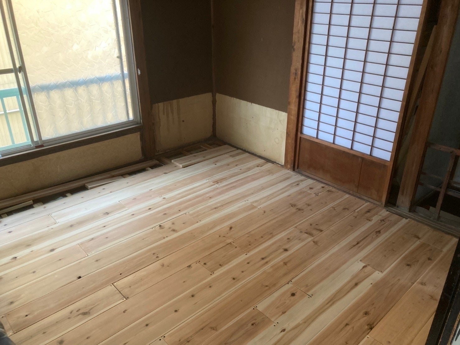 これまでに、ベランダの手すりのペンキ塗り、畳のはりかえ、ふすまはり、フローリングはり等の作業を行いました!