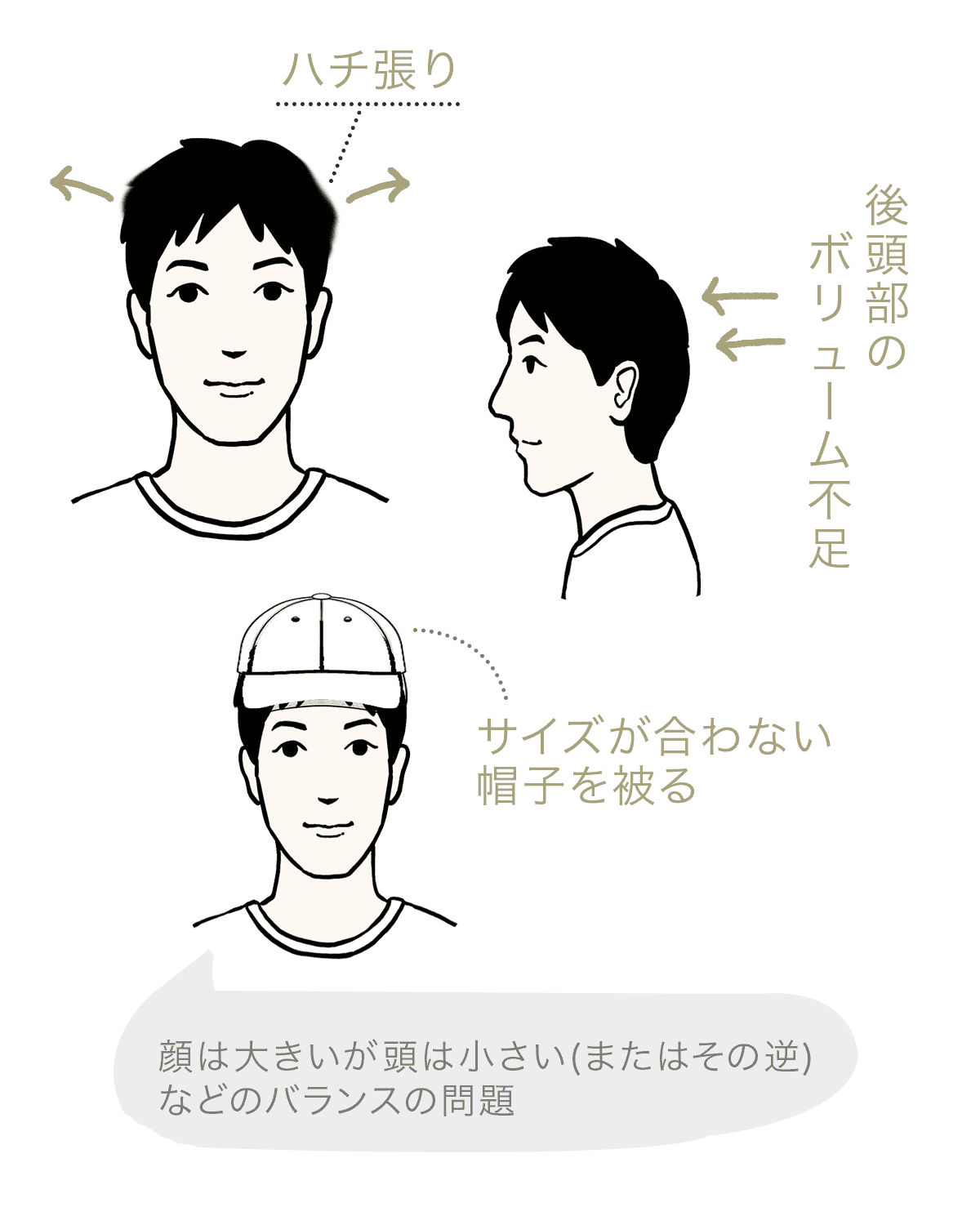 このように、頭や顔の形・毛量などが主な原因となっている場合があります。