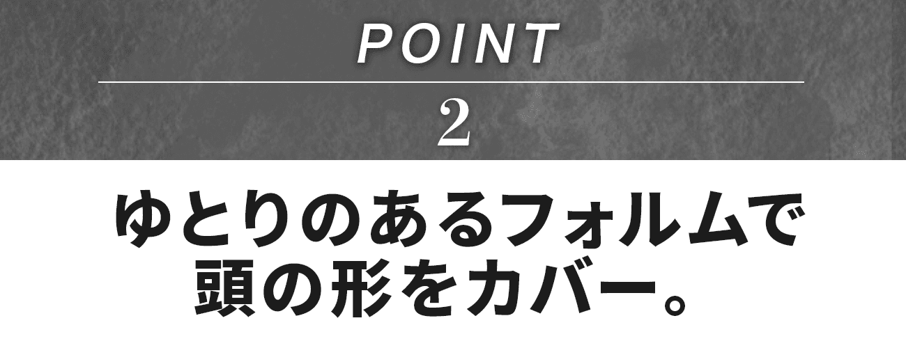 360度・両サイドのハチの張りもカバーしながら、後頭部のボリュームも自然に演出します。