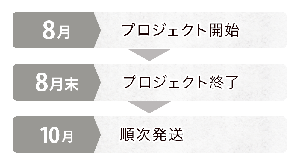 ※ご支援の数が想定を上回った場合、工場の製造の都合上により、出荷時期が遅れる場合がございいます。