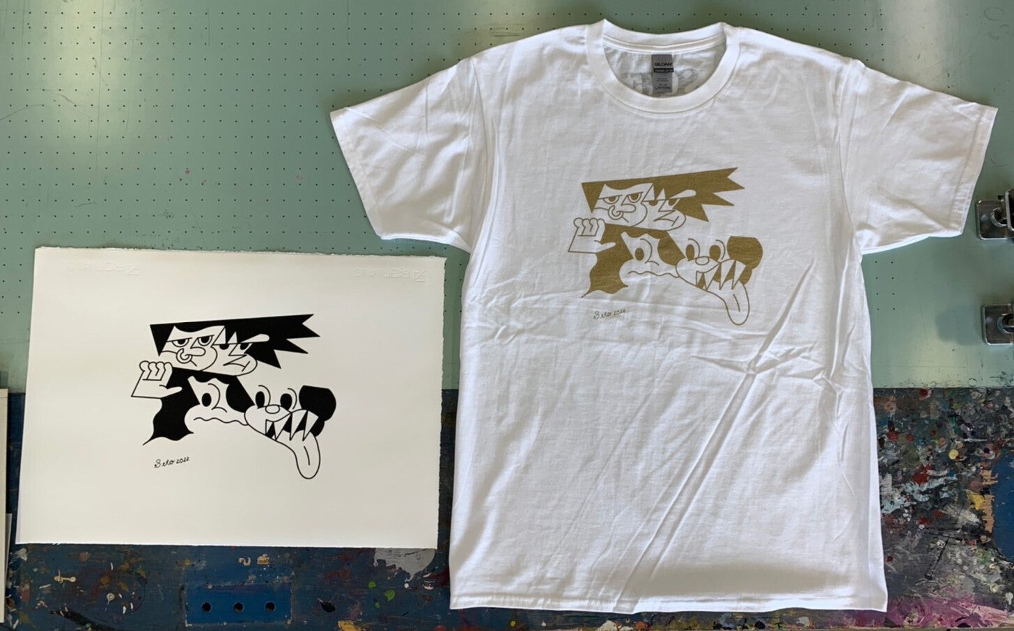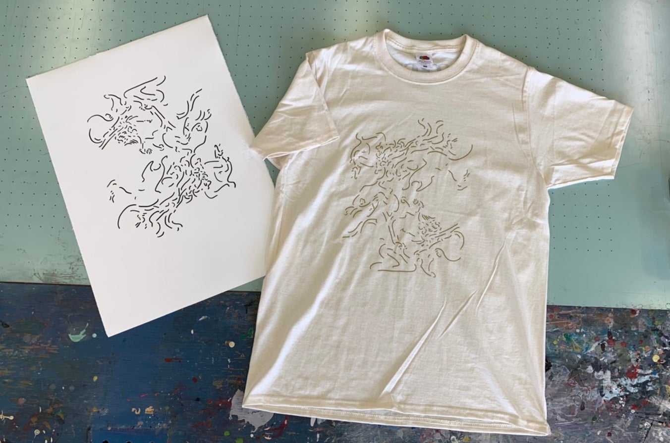 さて、リターンの目玉の一つである参加アーティストによるグッズTシャツですが、文谷有佳里、こいけぐらんじ両名と共にシルクスクリーンで刷ってきましたよ〜!