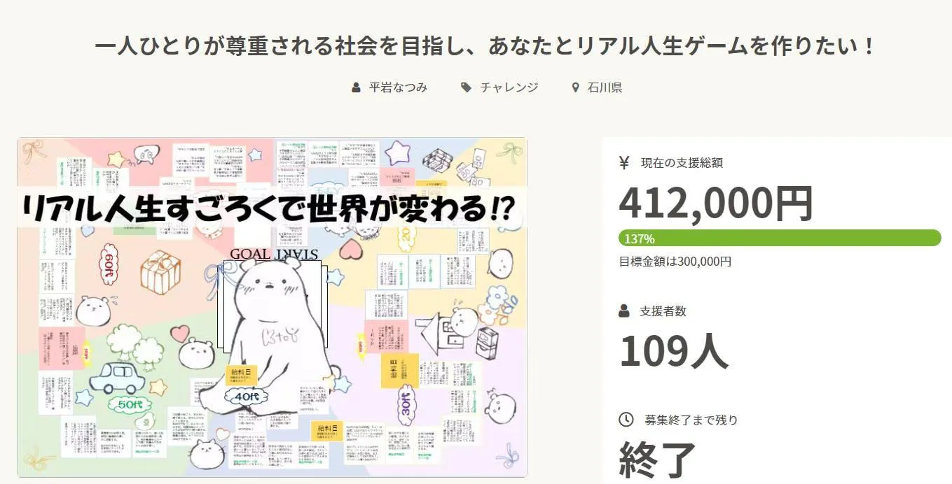一人ひとりが尊重される社会を目指し、あなたとリアル人生ゲームを作りたい! - CAMPFIRE (キャンプファイヤー) (camp-fire.jp)