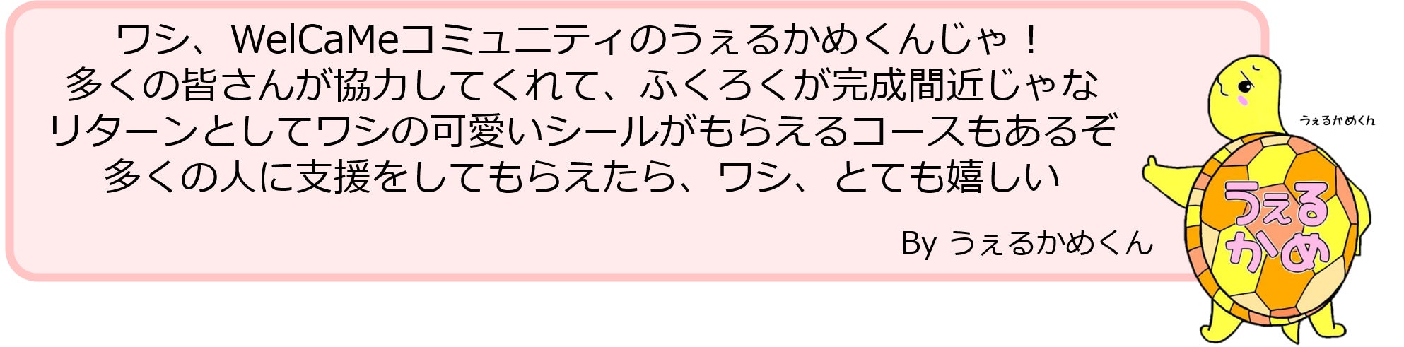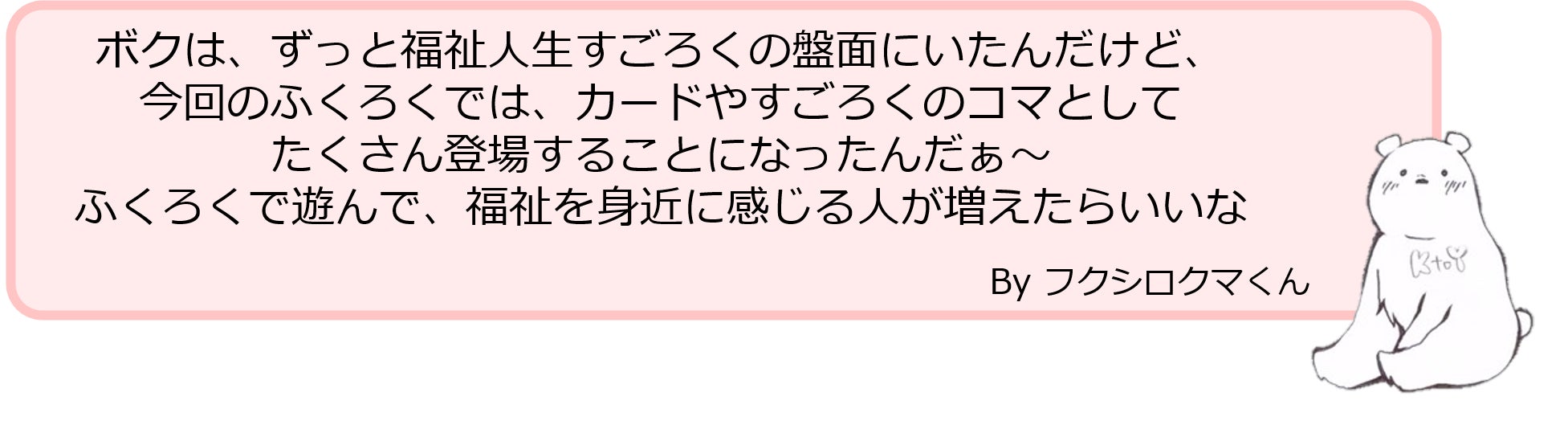 福祉KtoYが運営する全国医療福祉学生&若者コミュニティWelCaMeのキャラクター「うぇるかめくん」と、福祉人生すごろくのキャラクター「フクシロクマくん」から、応援のメッセージが届きました。