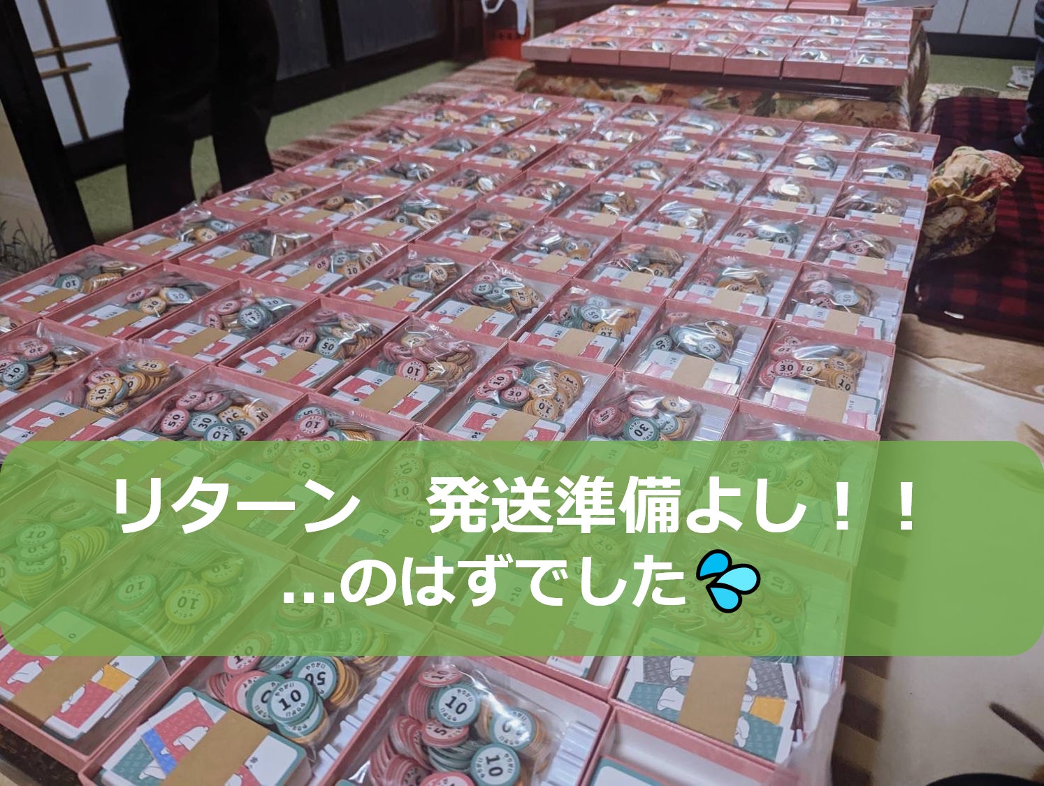 先日、やっと説明書の発注も完了しました!しかし、ほっとしたのも束の間、すでに納品されていたふくろくのカードに不備が見つかってしまいました (;_;)