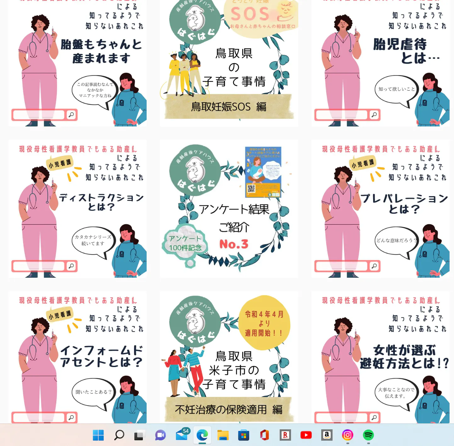 現在Instagramで助産師の豆知識や鳥取県の子育て情報を発信しています。