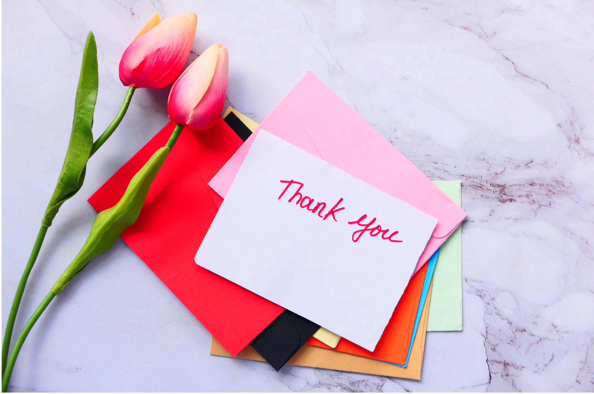 感謝の気持ちをたっぷり込めてハガキでお礼を伝えさせていただきます。